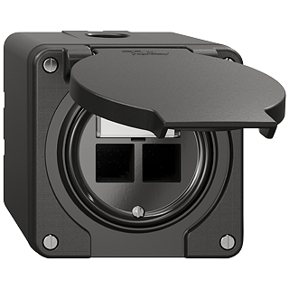 EASYNET Kit de montage S-One • Pour enfichage droit • Pour deux modules de raccordement RJ45 S-One • Disque frontale 60 mm, pour découpe 60 mm • Sans modules de raccordement • Double • Avec étiquette en papier • Hauteur 70 mm • NAP.Q • noir • IP55 • 87 x 87 mm • Résistance aux chocs: IK07