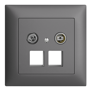 Prise multimédia 5-2000 MHz • Masse de blindage de classe A (+10 dB) • Prise de passage/prise finale • Résistance de terminaison intégrée • Atténuation 15 dB • Profondeur 33 mm • FMI • gris foncé • IP20 • 88 x 88 mm