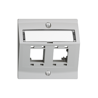 Kit de montage Cat. 5e/6 • Pour module de raccordement R&M freenet Cat. 5e/6, avec plaque de support • Capot de sortie oblique • Double • Avec étiquette en papier • Profondeur 37 mm • F • gris clair • IP20 • 60 x 60 mm