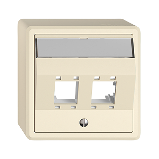 EDIZIO.liv •  Montageset Kat. 5e/6 •  Für R&M freenet Anschlussmodul Kat. 5e/6, mit Trägerplatte •  Mit Schrägauslasshaube •  Zweifach •  Mit Papiereinlage •  SNAPFIX® Befestigungssystem •  Anbauhöhe 67 mm •  GX.54.A •  crema •  IP20 •  74 x 74 mm