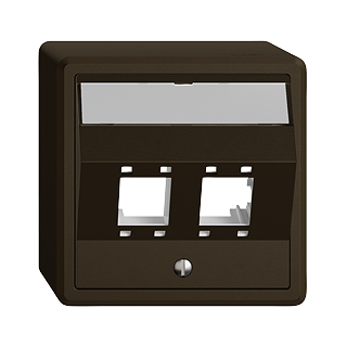 EDIZIO.liv •  Montageset Kat. 5e/6 •  Für R&M freenet Anschlussmodul Kat. 5e/6, mit Trägerplatte •  Mit Schrägauslasshaube •  Zweifach •  Mit Papiereinlage •  SNAPFIX® Befestigungssystem •  Anbauhöhe 67 mm •  GX.54.A •  umbra •  IP20 •  74 x 74 mm