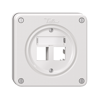 Kit de montage Cat. 5e/6 • Pour module de raccordement R&M freenet Cat. 5e/6, avec plaque de support • Sortie plate • Disque frontale 60 mm, pour découpe 58 mm • Double • Q • blanc