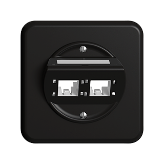 STANDARDdue (SNAPFIX) • Kit di montaggio Cat. 6A • Per modulo di raccordo R&M freenet Cat. 6A, speciale e adattatore di accoppiamento LC "Cat. 6A" • Copertura con uscita obliqua • Disco frontale 60 mm, per ritaglio 58 mm • Doppia • Con targhetta • Sistema de fissagio SNAPFIX® • QMI.A • nero • IP20 • 60 x 60 mm