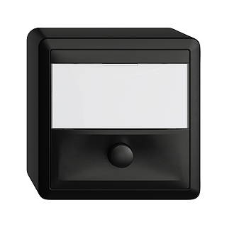 Contact à poussoir de sonnerie avec plaquette indicatrice • Verre acrylique avec porte-étiquette blanc • 6 A, 250 V • Avec bornes à vis • Fermeture • 1 L • Hauteur 54 mm • FX.54 • noir • IP20 • 74 x 74 mm
