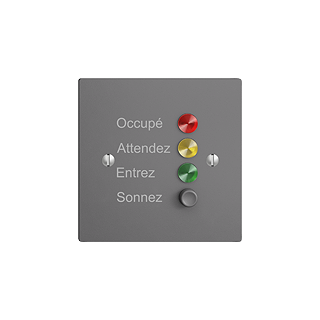 Station de porte pour signaux d'appel • Avec commutateur et vibreur • Indication par LED rouge, jaune et verte • Avec bornes à vis • Inscription française • Profondeur 20 mm • F • gris foncé • IP20 • 60 x 60 mm