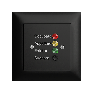 Station de porte pour signaux d'appel • Avec commutateur et vibreur • Indication par LED rouge, jaune et verte • Avec bornes à vis • Inscription italiennne • Profondeur 20 mm • FMI • noir • IP20