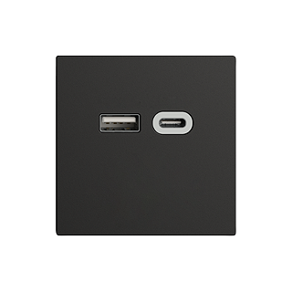 Prise de charge USB • 230 V AC • Puissance de sortie 18 W • Possible de connecter 2 appareils en parallèle • Consommation (en veille) max. 100 mW • Protection contre la surcharge et résistant au court-circuit • 1 x USB type A, 1 x USB type C • Tension de sortie 5-12 V DC • Avec bornes enfichables • Profondeur 41 mm • F • noir • IP20 • 60 x 60 mm