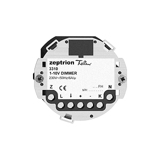 Mécanisme variateur 1-10 V zeptrion • Station principale • Pour poussoir zeptrion, interrupteur horaire zeptrion, zeptrion IR, série 3310 • 1 contact de commutation • Profondeur 23 mm • BSE • incolore • IP20 • Distance de fixation 52 mm • 2 A, 230 V AC • Pour ballast électronique BE max 600 VA (10 x 58 W / 15 x 36 W / 20 x 18 W) • Stations secondaires 3326