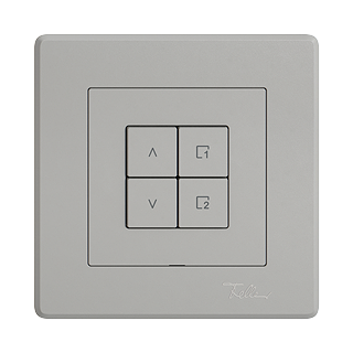 EDIZIO.liv • Station secondaire Wiser stores 1 canal scène • Station sans capacité, 230 V AC • Point de contrôle supplémentaire pour le contrôle d'un système Wiser, assignable de manière flexible • Le touche de scène vous permet d'enregistrer et de rappeler des scènes • Avec bornes enfichables • Éclairé par LED intégrée • 4 touches • Système de fixation SNAPFIX® • Profondeur 36 mm • GMI.A • gris clair • IP20 • 96 x 96 mm (93 x 93 mm)