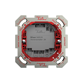 Unité fonctionnelle interrupteur pour stores Wiser 2 canaux • 4 contacts de commutation, 2 A chacun, 230 V AC • Fonctionnel avec commande Wiser • Système de fixation SNAPFIX®