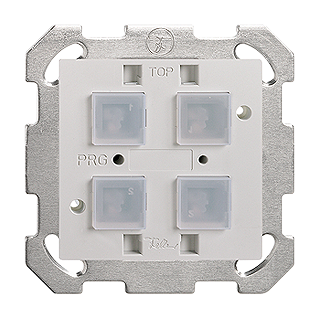 EDIZIOdue elegance • Poussoirs UNI avec LED • Éclairage homogène LED bleu • 12-48 V DC / 12-36 V AC • Courant de commutation min. 1 mA, max. 50mA • Max 10L • Avec bornes à vis • Quadruple • Profondeur 23 mm • BSM • IP20