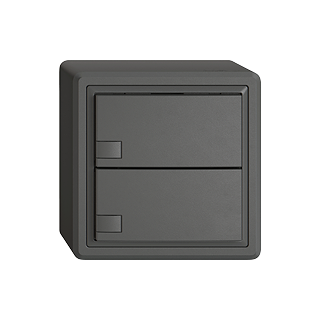 EDIZIO.liv • Poussoir UNI • 12-48 V DC / 12-36 V AC • Courant de commutation min. 1 mA, max. 50mA • Max. 14 L • Avec bornes à vis • Sans LED • Touche double • Commande à 1 touche • Système de fixation SNAPFIX® • Hauteur 59 mm • GX.54.A • gris foncé • IP20 • 74 x 74 mm
