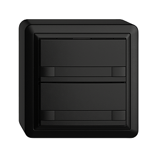 EDIZIOdue colore • Poussoir UNI • 12-48 V DC / 12-36 V AC • Courant de commutation min. 1 mA, max. 50mA • Max. 14 L • Avec bornes à vis • Sans LED • Avec étiquette en papier • Touche double • Commande à 2 touches • Hauteur 44 mm • FX.39 • noir • IP20 • 74 x 74 mm • Commande à 2 touches