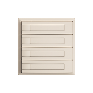 EDIZIOdue colore • UNI-Taster • 12-48 V DC / 12-36 V AC • Schaltstrom min 1 mA, max. 50 mA • Max. 14 L • Mit Schraubklemmen • Ohne LED • Mit Papiereinlage • Vierfach-Taste • 1-Tastenbedienung • Einbautiefe 17 mm • F • crema • IP20 • 60 x 60 mm