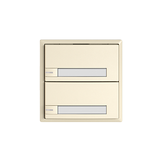 EDIZIO.liv • Poussoir UNI • Connecteur enfichable (sans connecteurs pour circuits imprimés) • Avec LED bleu • Avec étiquette en papier • Touche double • Commande à 1 touche • Système de fixation SNAPFIX® • Profondeur 17 mm • G.A • crema • IP20 • 60 x 60 mm