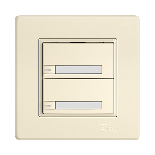 EDIZIO.liv • Pulsante UNI • Collegamento ad innesto (senza connettori per circuiti stampati) • Sistema de fissagio SNAPFIX® • Con LED blu • Con targhetta • Tasto doppio • Comando a 1 tasto • Profondità 17 mm • GMI.A • crema • IP20 • 96 x 96 mm (93 x 93 mm)