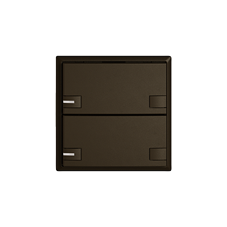 EDIZIO.liv • Pulsante UNI • Collegamento ad innesto (senza connettori per circuiti stampati) • Con LED blu • Tasto doppio • Comando a 2 tasti • Sistema de fissagio SNAPFIX® • Profondità 17 mm • G.A • umbra • IP20 • 60 x 60 mm