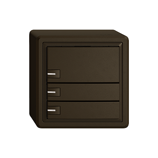 EDIZIO.liv • Pulsante UNI • Collegamento ad innesto (senza connettori per circuiti stampati) • Con LED blu • Tasto triplo • Comando a 1 tasto • Sistema de fissagio SNAPFIX® • Altezza 59 mm • GX.54.A • umbra • IP20 • 74 x 74 mm