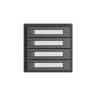 EDIZIO.liv • UNI-Taster • Steckverbinder (ohne Leiterplatten-Steckverbinder) • Ohne LED • Mit Papiereinlage • Vierfach-Taste • 1-Tastenbedienung • SNAPFIX® Befestigungssystem • Einbautiefe 17 mm • G.A • dunkelgrau • IP20 • 60 x 60 mm