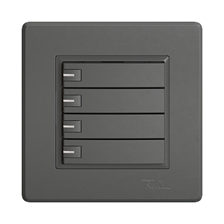EDIZIO.liv • Poussoir UNI • Connecteur enfichable (sans connecteurs pour circuits imprimés) • Système de fixation SNAPFIX® • Avec LED bleu • Touche quadruple • Commande à 1 touche • Profondeur 17 mm • GMI.A • gris foncé • IP20 • 96 x 96 mm (93 x 93 mm)