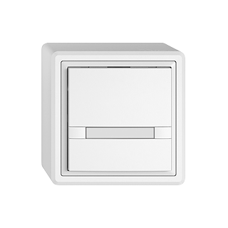 EDIZIO.liv • Pulsante UNI • Interfaccia seriale, con protocollo • 5 V DC • Collegamento ad innesto • Senza LED • Con targhetta • Tasto semplice • Comando a 2 tasti • Sistema de fissagio SNAPFIX® • Altezza 59 mm • GX.54.A • bianco • IP20 • 74 x 74 mm
