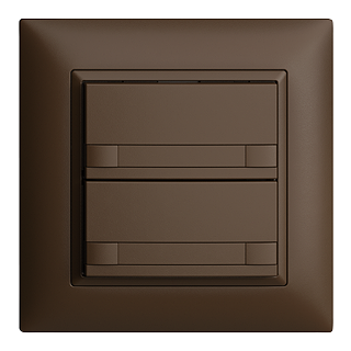 EDIZIOdue colore • Poussoir UNI • Sériel, avec protocole • 5 V DC • Connecteur enfichable • Sans LED • Avec étiquette en papier • Touche double • Commande à 2 touches • Profondeur 17 mm • FMI • coffee • IP20 • 88 x 88 mm