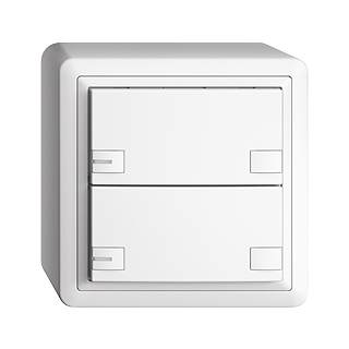 EDIZIOdue colore • Poussoir UNI • Sériel, avec protocole • 5 V DC • Connecteur enfichable • Avec LED rouge, vert, bleu • Touche double • Commande à 2 touches • Hauteur 59 mm • FX.54 • blanc • IP20 • 74 x 74 mm