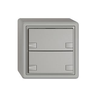EDIZIO.liv • Poussoir UNI • Sériel, avec protocole • 5 V DC • Connecteur enfichable • Avec LED rouge, vert, bleu • Touche double • Commande à 2 touches • Système de fixation SNAPFIX® • Hauteur 59 mm • GX.54.A • gris clair • IP20 • 74 x 74 mm
