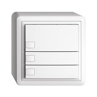 EDIZIOdue colore • Pulsante UNI • Interfaccia seriale, con protocollo • 5 V DC • Collegamento ad innesto • Senza LED • Tasto triplo • Comando a 1 tasto • Altezza 59 mm • FX.54 • bianco • IP20 • 74 x 74 mm