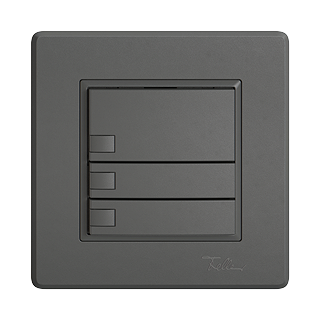 EDIZIO.liv • Poussoir UNI • Sériel, avec protocole • 5 V DC • Connecteur enfichable • Système de fixation SNAPFIX® • Sans LED • Touche triple • Commande à 1 touche • Profondeur 17 mm • GMI.A • gris foncé • IP20 • 96 x 96 mm (93 x 93 mm)