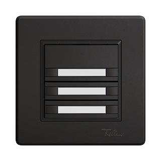 EDIZIO.liv • UNI-Taster • Seriell, mit Protokoll • 5 V DC • Steckverbinder • SNAPFIX® Befestigungssystem • Ohne LED • Mit Papiereinlage • Dreifach-Taste • 2-Tastenbedienung • Einbautiefe 17 mm • GMI.A • schwarz • IP20 • 96 x 96 mm (93 x 93 mm)