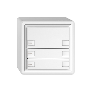 EDIZIO.liv • Poussoir UNI • Sériel, avec protocole • 5 V DC • Connecteur enfichable • Avec LED rouge, vert, bleu • Touche triple • Commande à 2 touches • Système de fixation SNAPFIX® • Hauteur 59 mm • GX.54.A • blanc • IP20 • 74 x 74 mm