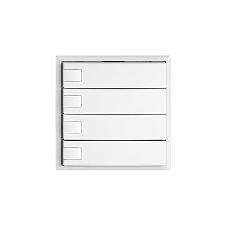 EDIZIO.liv • UNI-Taster • Seriell, mit Protokoll • 5 V DC • Steckverbinder • Ohne LED • Vierfach-Taste • 1-Tastenbedienung • SNAPFIX® Befestigungssystem • Einbautiefe 17 mm • G.A • weiss • IP20 • 60 x 60 mm