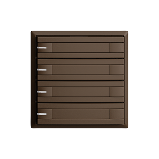 EDIZIOdue colore • Poussoir UNI • Sériel, avec protocole • 5 V DC • Connecteur enfichable • Avec LED rouge, vert, bleu • Avec étiquette en papier • Touche quadruple • Commande à 2 touches • Profondeur 17 mm • F • coffee • IP20 • 60 x 60 mm