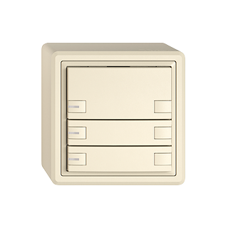 EDIZIO.liv • Poussoir UNI • Sériel, avec protocole • 5 V DC • Connecteur enfichable • Avec LED rouge, vert, bleu • Touche sextuple • Commande à 1 touche • Système de fixation SNAPFIX® • Hauteur 59 mm • GX.54.A • crema • IP20 • 74 x 74 mm