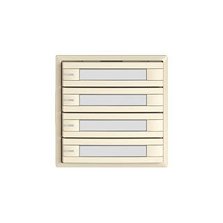 EDIZIO.liv • UNI-Taster • Seriell, mit Protokoll • 5 V DC • Steckverbinder • Mit LED Rot, Grün, Blau • Mit Papiereinlage • Achtfach-Taste • 1-Tastenbedienung • SNAPFIX® Befestigungssystem • Einbautiefe 17 mm • G.A • crema • IP20 • 60 x 60 mm