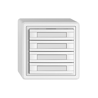 EDIZIO.liv • Pulsante UNI • Interfaccia seriale, con protocollo • 5 V DC • Collegamento ad innesto • Senza LED • Con targhetta • Tasto ottuplo • Comando a 1 tasto • Sistema de fissagio SNAPFIX® • Altezza 59 mm • GX.54.A • bianco • IP20 • 74 x 74 mm