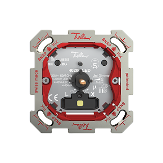 Variateur universel rotatif LED • 230 V AC, 50 Hz • Pour lampes LED variables • 4-400 W ohmique, 4-400 VA inductive/capacitive, 4-200 W/VA lampes LED • Système de fixation SNAPFIX®