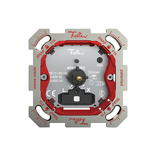 Variateur rotatif par interruption de phase • 230 V AC, 50 Hz • Pour lampes à incandescence et lampes halogènes BT • 20-600 W ohmique, 20-600 VA capacitif • Système de fixation SNAPFIX®