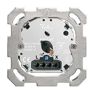 Variateur rotatif par interruption de phase • Lumineux • 230 V AC, 50 Hz • Pour lampes à incandescence et lampes halogènes BT • 20-600 W ohmique, 20-600 VA capacitif • Avec LED bleu 1,0 mA • BSE