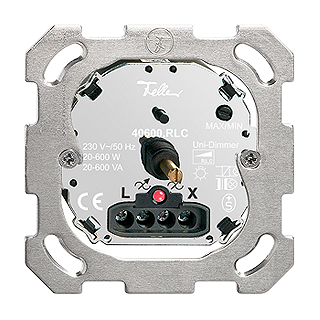 Variateur universel rotatif • Lumineux • 230 V AC, 50 Hz • Pour lampes à incandescence et lampes halogènes BT • Pour transformateurs électroniques • Pour transformateurs conventionnels • Mode de charge mixte de transformateurs électroniques et conventionnels n’est pas possible • Luminosité minimale et maximale réglable • Avec contact de commutation pour contact inverseur • Avec LED rouge 1,0 mA • 20-600 W ohmique, 20-600 VA inductif/capacitif • Profondeur 29 mm • BSM • incolore • IP20 • 77 x 77 mm