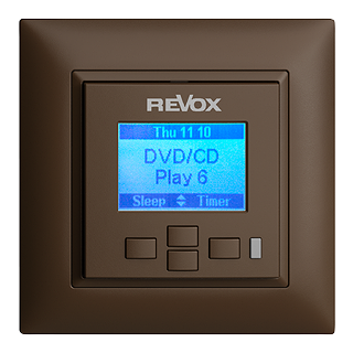 Affichage mural • Navigation par 4 touches • Affichage LCD lumineux bleu, avec mode économie • Fonction minuterie intégrée • Récepteur IR pour télécommandes REVOX • Indication des fonctions et informations primordiales • Profondeur 20 mm • FMI • coffee • IP20 • 88 x 88 mm