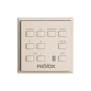 Commande murale • Commande du systéme par 10 touches • LED de confirmation bleu • Sorties, volume, Encl/Décl avant/retour • Récepteur IR pour télécommandes REVOX • Profondeur 20 mm • F • crema • IP20 • 60 x 60 mm