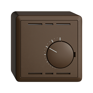 Thermostat • Sans interrupteur, pour servomoteurs conventionelles • 230 V AC, 50 Hz • Courant nominal: chauffage 10 A (courant réactiv 4 A), refroidissement 5 A (courant réactiv 2 A) • Différence de température de commutation env. 0,5 K • Avec bornes enfichables • Hauteur 59 mm • FX.54 • coffee • IP20 • 88 x 88 mm
