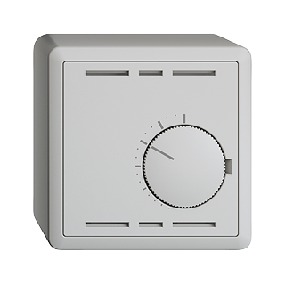 Thermostat • Sans interrupteur, pour servomoteurs conventionelles • 230 V AC, 50 Hz • Courant nominal: chauffage 10 A (courant réactiv 4 A), refroidissement 5 A (courant réactiv 2 A) • Différence de température de commutation env. 0,5 K • Avec bornes enfichables • Hauteur 59 mm • FX.54 • gris clair • IP20 • 88 x 88 mm