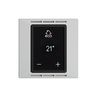 Thermostat d'ambiance programmable avec écran •  10 A, 230 V AC •  Un modèle pour toutes les variantes ; régulateur d'ambiance •  Régulateur de plancher chauffant et régulateur de température ambiante avec fonction limiteur •  Plage de réglage de température du régulateur d'ambiance 5–35 ⁰C •  Plage de réglage de température du régulateur de plancher chauffant 5–50 ⁰C •  Possibilité de sonde à distance: 2 kΩ, 10 kΩ, 15 kΩ, 33 kΩ, type CTN, à commander séparément p. ex. 4200.NTC •  Adaptation à vannes ouvertes ou fermées hors tension et protection de vanne (désactivable) •  Mode Confort/Eco/Vacances/Hors gel/Arret •  Abaissement de température (réglable) par programme, manuel ou par signal externe (230 V AC) •  Configuration simple et rapide via appli ou au thermostat •  Avec bornes à vis •  Profondeur 40 mm •  gris clair •  F •  IP20