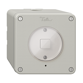 Poussoir KNX RGB • Disque frontale 53 mm, pour découpe 53 mm • Protection contre l'humidité activable • gris clair