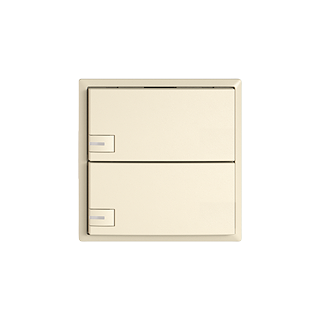 EDIZIO.liv • KNX-Taster RGB • 21-30 V DC SELV • Grundbedarf max. 250 mW • KNX-Busanschlussklemme • Inklusive KNX Secure Busankoppler • Besteht aus Funktionseinsatz mit bis zu acht möglichen Tastenbelegungen • Mit Temperaturfühler • SNAPFIX® Befestigungssystem • Mit RGB-LED rot, grün, blau, weiss, gelb, volett, und 2 frei definierbaren Anwenderfarben • Zusätzliche Leistung pro LED max. 10 mW • Zweifach-Taste • 1-Tastenbedienung • Einbautiefe 22 mm • G.A • crema • IP20 • 60 x 60 mm