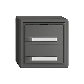 EDIZIO.liv • KNX-Taster RGB • 21-30 V DC SELV • Grundbedarf max. 250 mW • KNX-Busanschlussklemme • Inklusive KNX Secure Busankoppler • Besteht aus Funktionseinsatz mit bis zu acht möglichen Tastenbelegungen • Mit Temperaturfühler • SNAPFIX® Befestigungssystem • Ohne LED • Mit Papiereinlage • Zweifach-Taste • 1-Tastenbedienung • Anbauhöhe 59 mm • GX.54.A • dunkelgrau • IP20 • 74 x 74 mm