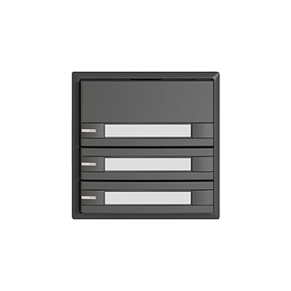 EDIZIO.liv • KNX-Taster RGB • 21-30 V DC SELV • Grundbedarf max. 250 mW • KNX-Busanschlussklemme • Inklusive KNX Secure Busankoppler • Besteht aus Funktionseinsatz mit bis zu acht möglichen Tastenbelegungen • Mit Temperaturfühler • SNAPFIX® Befestigungssystem • Mit RGB-LED rot, grün, blau, weiss, gelb, volett, und 2 frei definierbaren Anwenderfarben • Zusätzliche Leistung pro LED max. 10 mW • Mit Papiereinlage • Dreifach-Taste • 2-Tastenbedienung • Einbautiefe 22 mm • G.A • dunkelgrau • IP20 • 60 x 60 mm